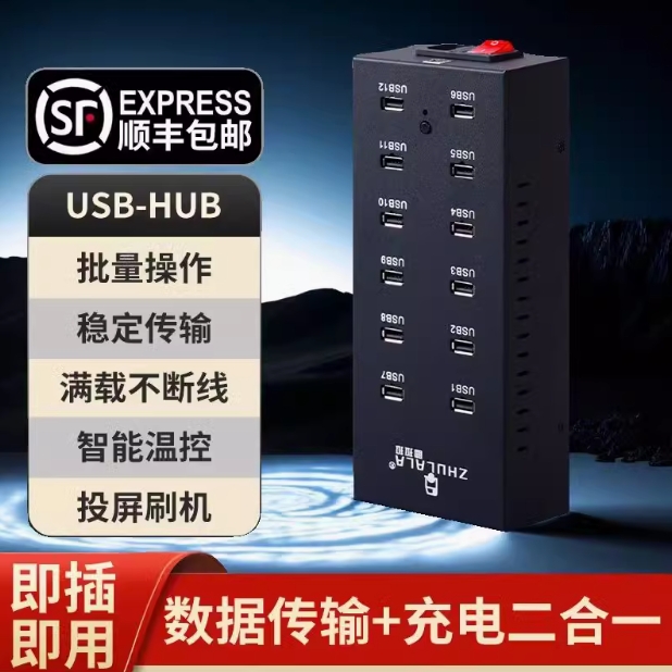 工业级20口USB集线器手机刷机硬盘扩展充电专用HUB带12