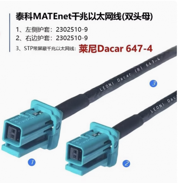 兆车载以太网线束双母头2302510-9连接线莱尼线材