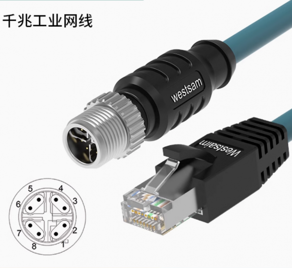 M12转RJ45航空公母插头8芯X型千兆工业以太网传输线缆